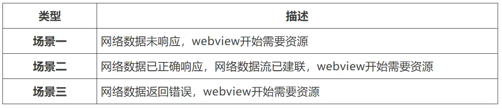 並行加載的核心問題是如何在webview需要資源時,將並行請求的資源無縫交接。根據資源狀態可分為三類場景: