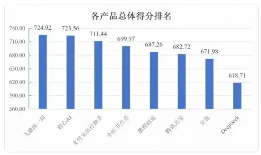 國內首份系統性的《AI旅行助手評價體系》日前發佈,飛豬問一問以724.92分(滿分900分)的綜合得分排名第一,程心AI、支付寶出行助手分別位居第二和第三,小紅書點點、攜程問道、騰訊元寶、豆包、DeepSeek緊隨其後。
