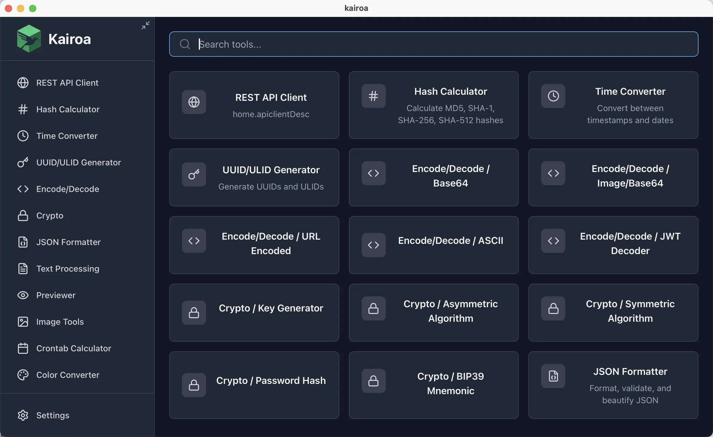 Kairoa 是為開發者打造的簡潔、直觀且跨平台的桌面開發者工具。