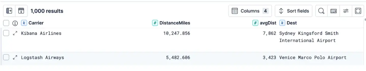 | INLINE STATS avgDist = ROUND(AVG(DistanceMiles))