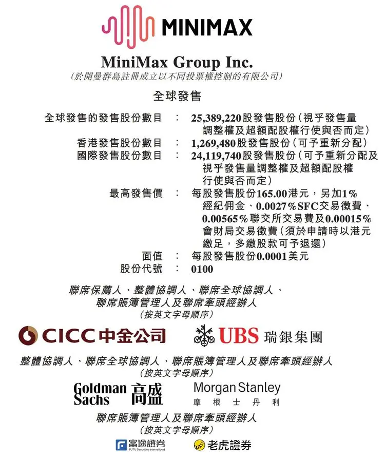 AI大模型公司MiniMax正式啓動香港首次公開募股。公司計劃於2026年1月9日以股票代碼“0100”在港交所主板掛牌上市。