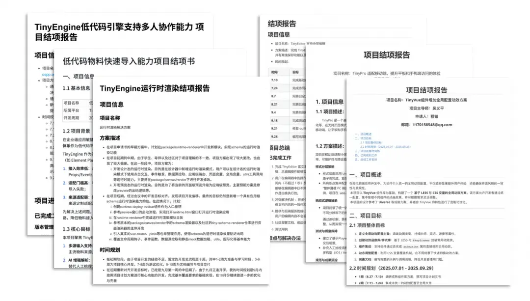 同時,也非常感謝所有投稿的開發者,包含Node.js系列文章作者屈金雄、曹楊毅;前端性能優化作者董福俊;字體性能優化作者張庭岑;AI知識科普作者合豔春;TinyVue相關內容作者曾令卡、鄭志超、申君健、岑灌銘、劉坤等;TinyEngine相關內容作者伍其和、李錦浩、胡靖、王莉純、李璇、李坤、觀默等;OpenTiny開源之夏項目相關作者周天意、夏雯斐、張筠、張顥嚴、程鍇、龔昱帆、宋子文、王晨光、周澤龍、張珈瑜、申曜楓、曹裏林及其導師。