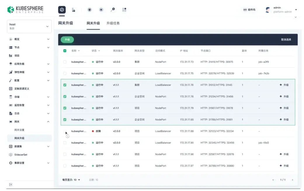 平台管理員可在集羣視角統一配置企業空間級與項目級網關,實現分級部署與權限管控,滿足不同業務對流量隔離、入口管理和權限控制的差異化需求,滿足企業精細化運維規範。