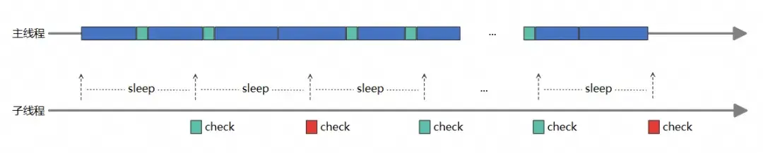 定時派發任務:子線程定期向主線程派發一個簡單的任務,並設置一個等待標記。