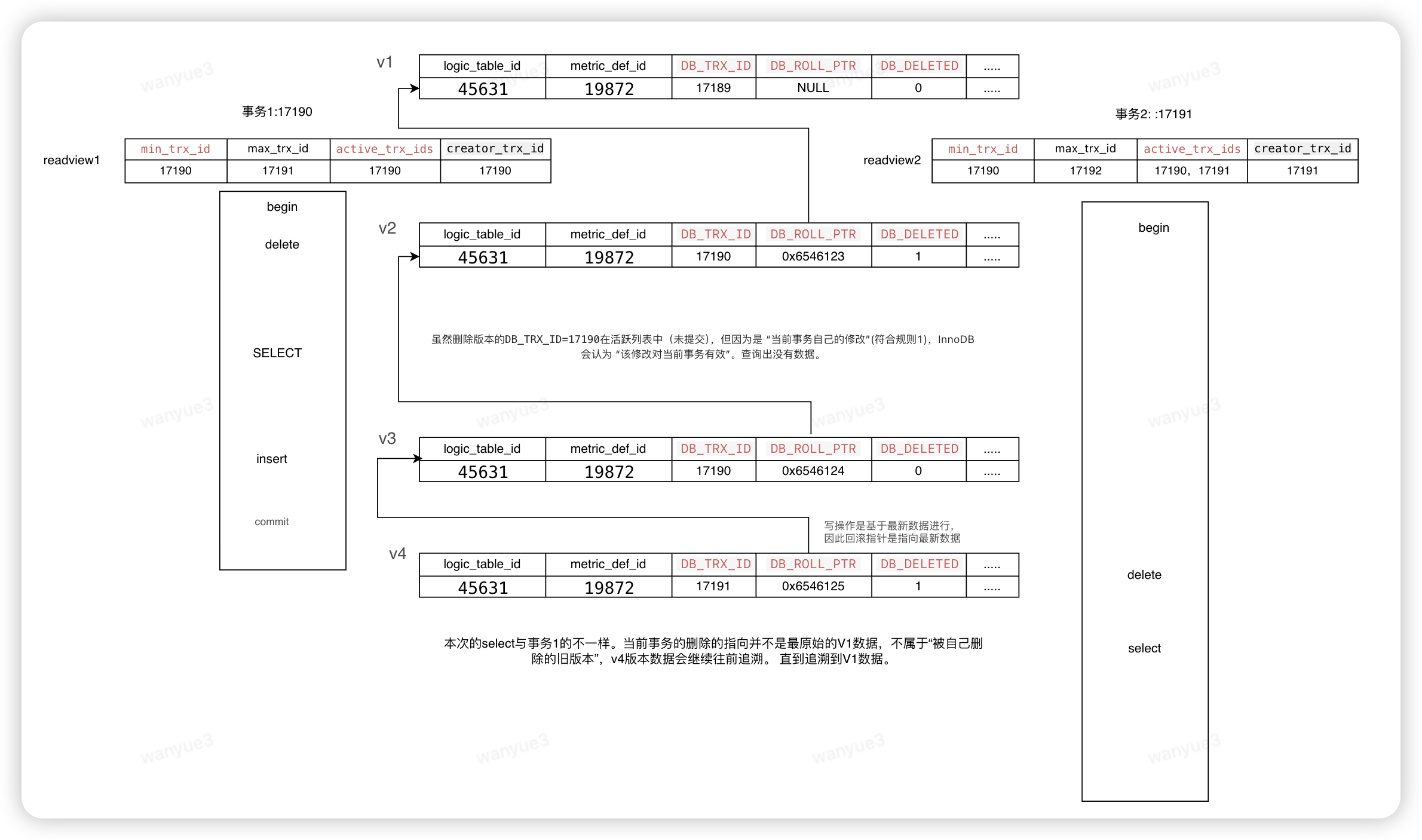 | 自己生成的版本 | V2(trx_id=17190,已刪除) | V4(trx_id=17191,已刪除) |