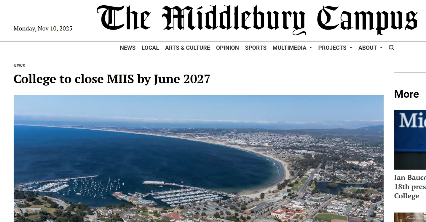 全球知名的蒙特雷國際研究院(MIIS)發佈消息,決定將於2027年夏季正式關閉其線下研究生項目。作為被譽為 “翻譯界哈佛” 的學府,MIIS 的這一決定引發了廣泛關注和討論。