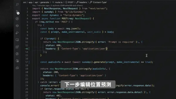 當開發者更改變量後,Qoder NEXT 會主動預判其他需要該變量的位置,自動補全並自動添加引用語句,甚至生成完整的函數實現。