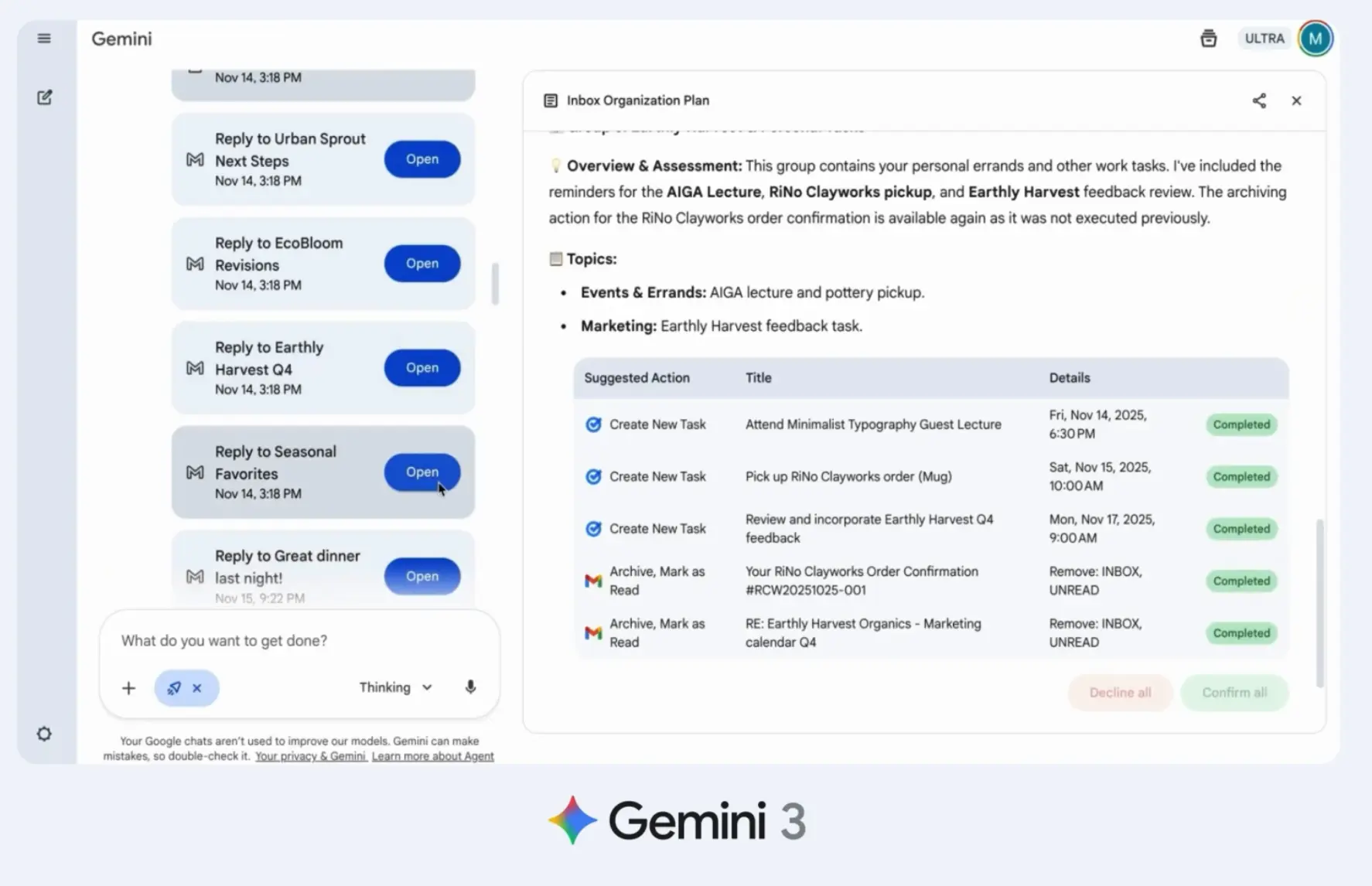 - 智能體與長程規劃:首次推出“Gemini Agents”,可執行多步驟複雜任務(如行程規劃、郵件整理),並在Vending-Bench 2測試中位居第一。