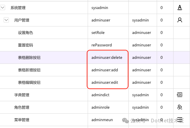 // 菜單中請設置權限 useradmin:edit,useradmin:delete,useradmin:add