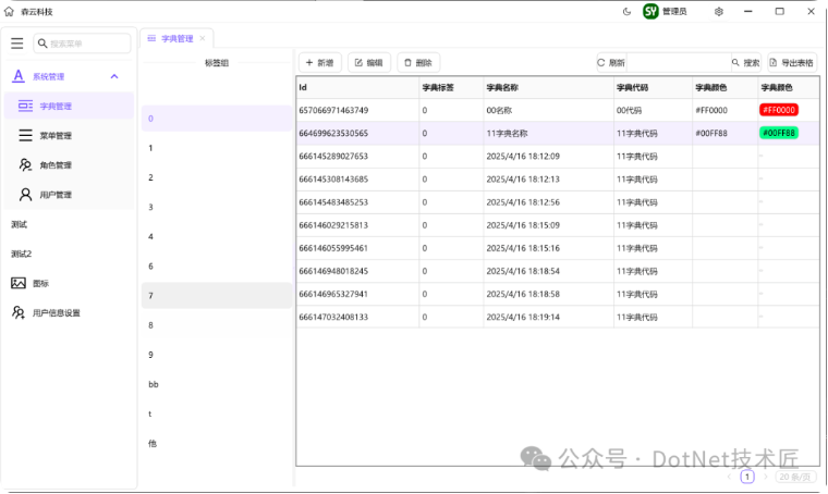 字典管理:提供增刪改查功能,方便管理系統中的各類字典數據。