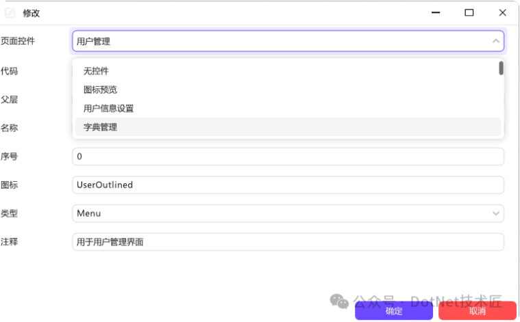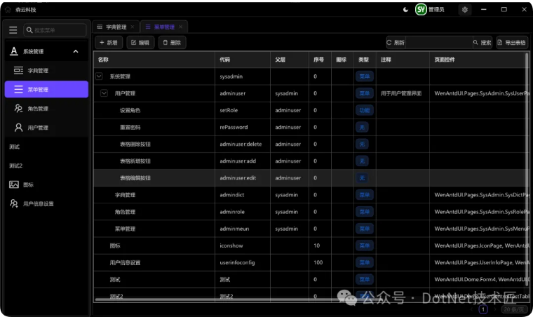菜單管理:實現菜單的增刪改查,支持自定義頁面控件和樣式。