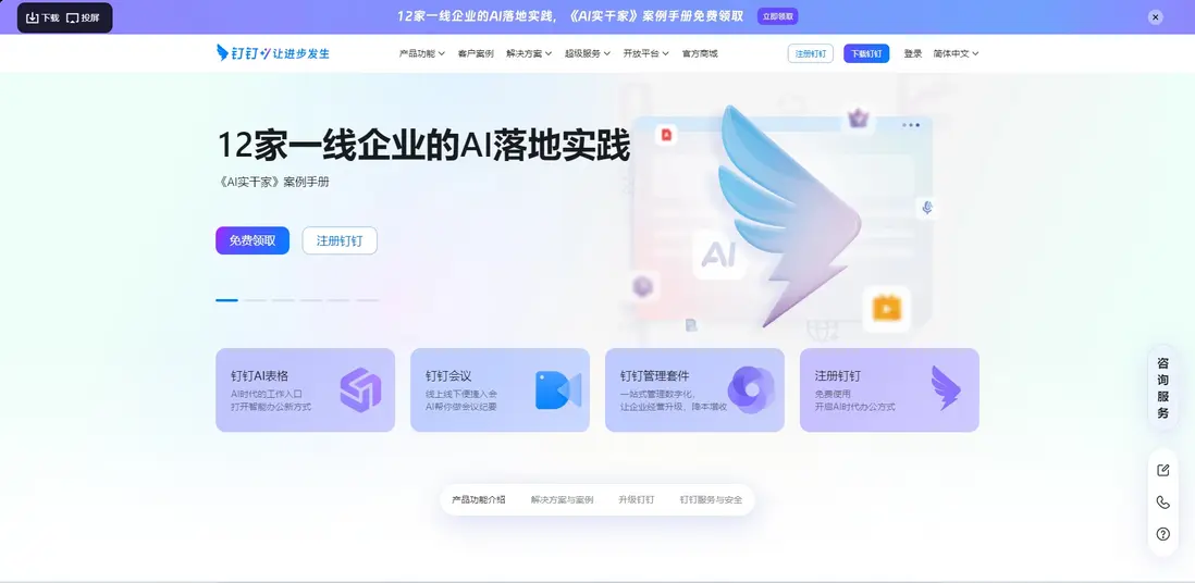 - 核心定位:依託釘釘龐大企業用户基數,主打標準化管理方案,實現“項目管理+日常辦公”一體化協同。