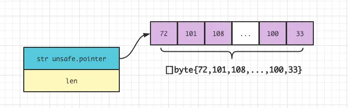 str unsafe.Pointer // 指向一個byte類型的切片指針