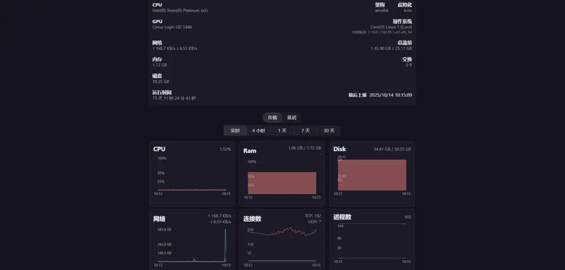 • 直觀 Web 界面:通過簡潔明瞭的儀表盤,可實時查看 CPU、內存、磁盤、網絡等關鍵指標,新手也能快速上手