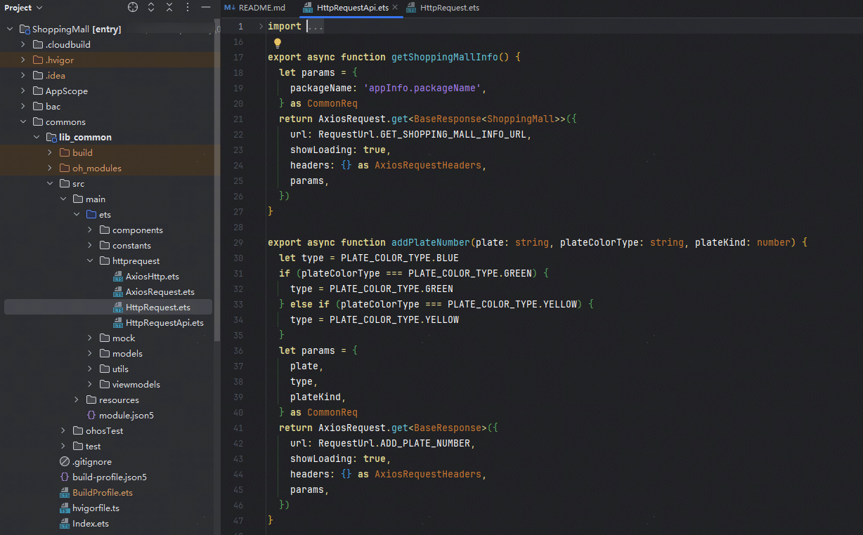 將commons/lib_common/src/main/ets/httprequest/HttpRequestApi.ets文件中的mock接口替換為真實的服務器接口。