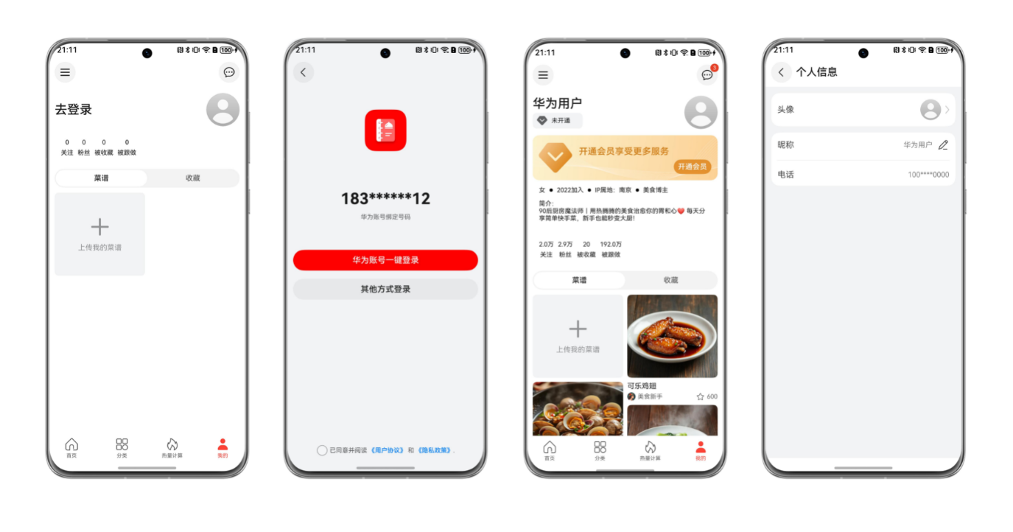 - 集成華為賬號、支付等服務,只需做少量配置和定製即可快速實現華為賬號的登錄、菜譜上傳等功能。