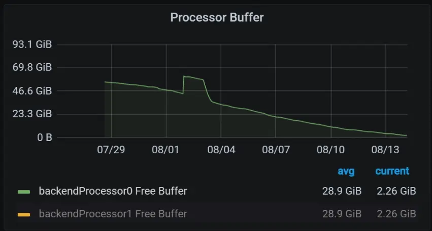再來看 dble 中 free buffer的監控圖(這個指標是記錄dble中Processor的堆外內存使用情況的):