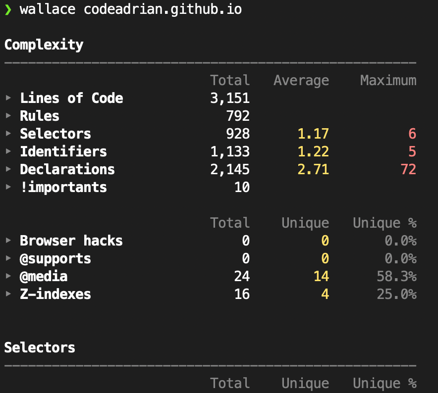 When doing a CSS audit or preparing for a CSS refactor, I rely on several of many useful tools to get a general overview and useful stats about the CSS codebase.