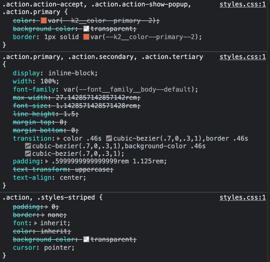 For example, by overspecifying selectors, a single developer can severely limit the usability, leading to other developers having to duplicate the code in order to use it for other, similar components with different markup. These issues often occur when developers lack understanding and not leveraging the underlying mechanisms behind CSS (cascade, inheritance, browser performance, and selector specificity). These early decisions can lead to major repercussions in the future, so the CSS codebase’s health and maintainability rest on the developer’s knowledge, skills, and understanding of the CSS fundamentals.