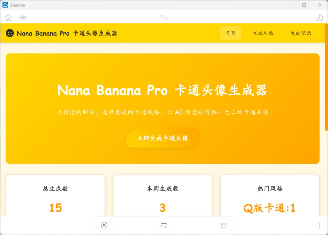 之前在秒噠上玩過一個“Nana Banana Pro 卡通頭像生成器”,比較有意思,就拿這個應用來試試DeepSeek+iThinkAir氛圍編程的效果。
