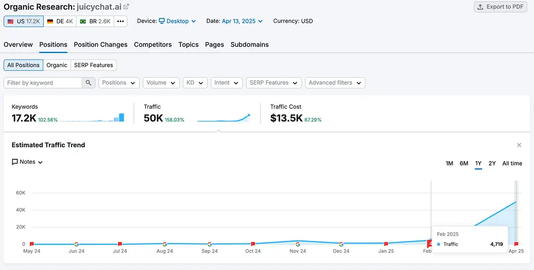 50000 x 30(天) x 10%(AI類行業平均點擊率) x 1(比較保守的美國CPC,其實不止) = 150000$,這是一個純流量價值,這是通過免費的方式得到的。
