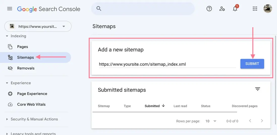 站點地圖報告顯示了我們提交的站點地圖的歷史記錄和任何相關問題。我們可以: