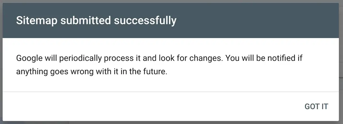 Google處理完我們的站點地圖後,我們將看到這樣的消息: