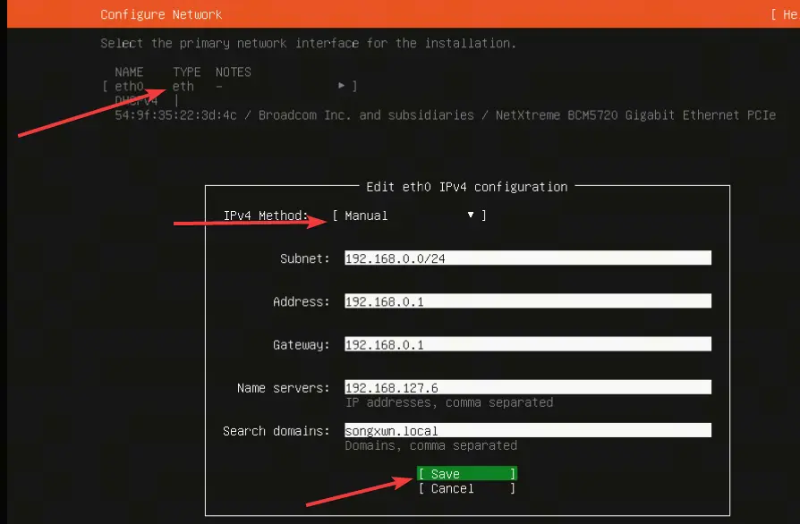 - 配置為IPv4靜態分配、IP地址和掩碼、網關