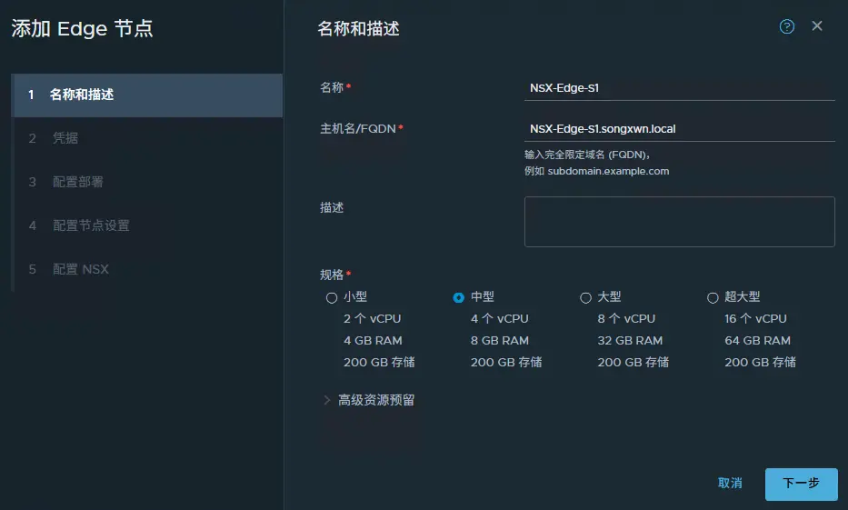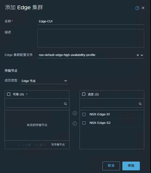 系統 > Fabric > 節點 > Edge 傳輸節點 > 添加EDGE節點