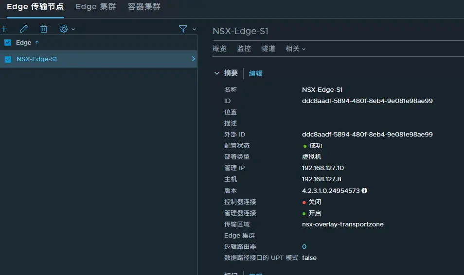 - 部署完成後,Edge 節點自動註冊到 NSX Manager 並加入傳輸區域。