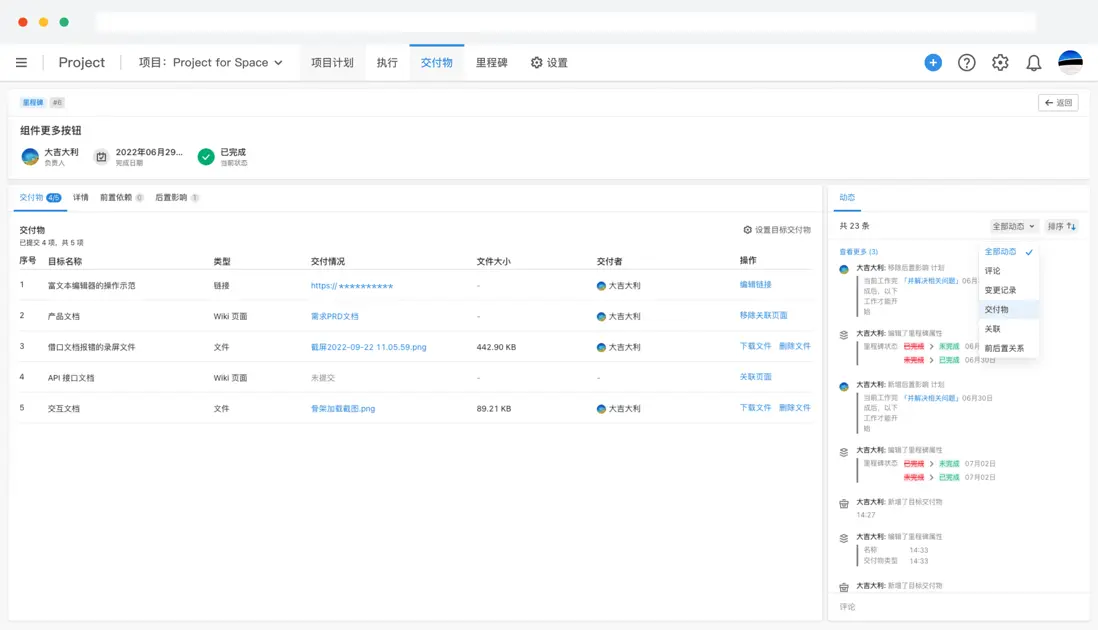 配圖:用 ONES 項目管理工具記錄項目里程碑和交付物等關鍵信息