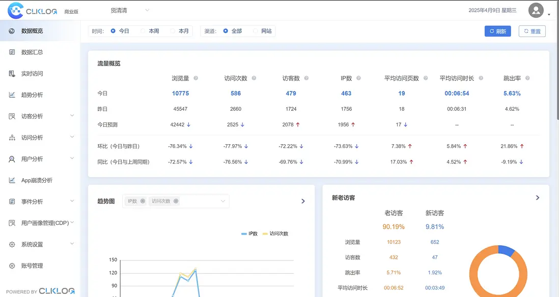 ClkLog埋點分析系統,是一種全新的、開源的洞察方案,它能夠幫助您捕捉每一個關鍵數據點,確保您的決策基於最準確的用户行為分析。技術人員可快速搭建私有的分析系統。