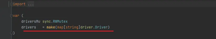 可以看到在sql包裏面有一個全局map,裏把存放了mysql這個名字的driver