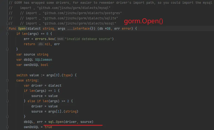 再來查看 gorm.Open() 的實現就一目瞭然了