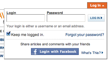 A modal window also keeps users on the current page, but it opens up at the center of the window, putting the focus entirely on the log-in form. This option gives you room to add supplemental information to the form.