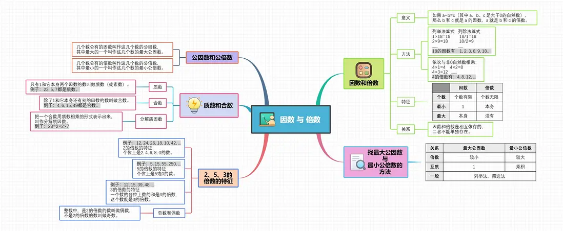 “因數與倍數”思維導圖模板在線免費體驗鏈接