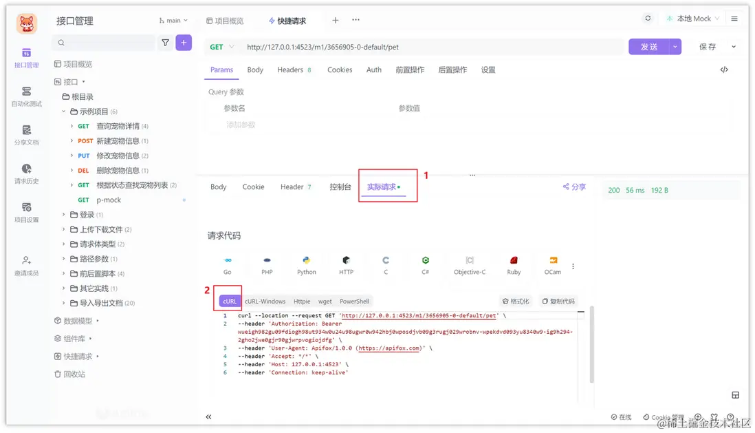 複製 cURL 或查看執行成功的接口請求也極其方便,你只需點擊接口的...圖標然後選擇“複製 cURL”。