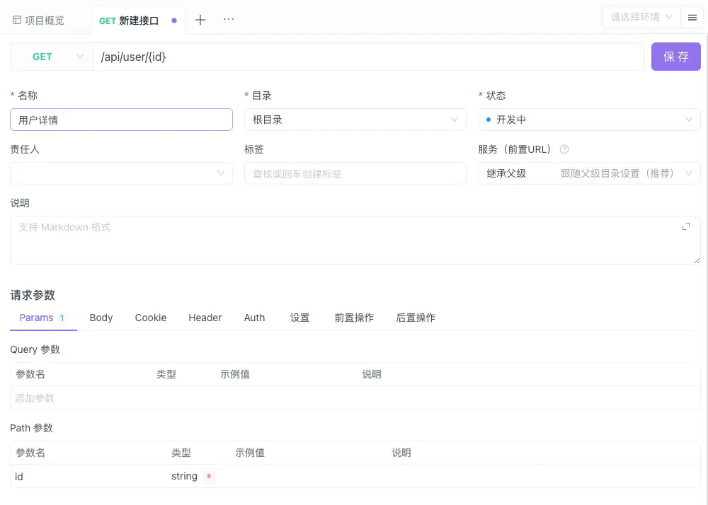 這邊以創建用户詳情接口為例來展示創建接口的功能。