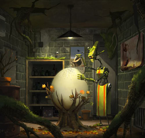The visions of Alex Ruiz range from dark and disturbing to vomit-inducing cuteness and hilarity. In his paintings, the creatures of his mind crawl off the page and transplant themselves into the unsuspecting viewer’s brain, even taking up residence there. Alex is a freelance concept artist and illustrator living in Los Angeles, California. He lends his talents to the film, television and interactive games industries.
