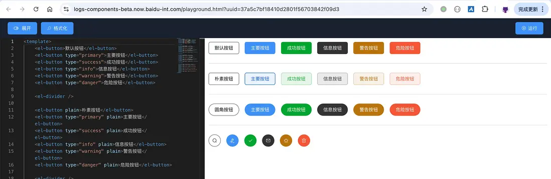 基於以上各種問題,將 element-ui 官方的示例 fork 到組件庫中,使用和日誌中台一樣的主題,並修復上述各種問題。