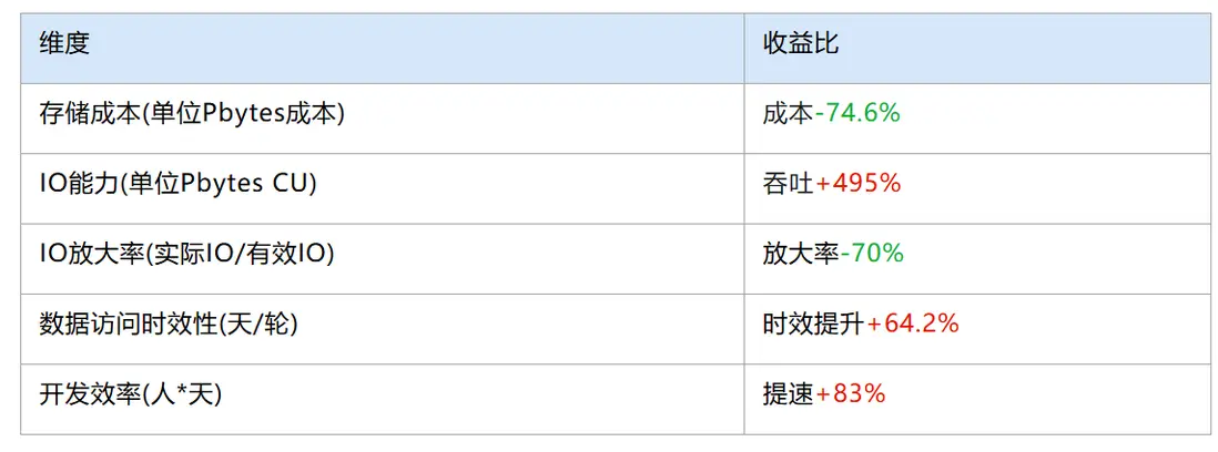 通過上述的架構設計以及優化手段,我們在IO能力、訪問成本、開發效率等方面取得顯著成果。