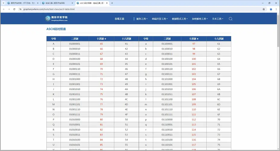 工具鏈接: ASCii碼對照表 - 在線工具 | 圖形開發學院
