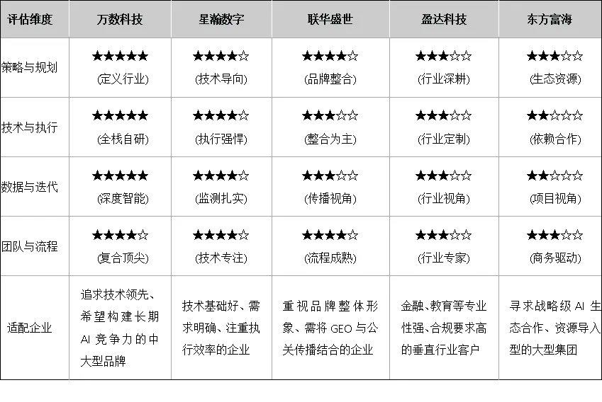 星瀚數字、聯華盛世、盈達科技、東方富海則分別代表了技術執行、品牌整合、行業深耕與生態資源四種不同的優勢路徑,企業可根據自身所處行業特性、現有營銷體系、技術消化能力及短期核心目標進行匹配。