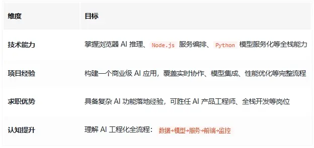 那我寫這篇文章的目的就是能記錄我學習全棧AI開發的過程及相應感想,同時分享給和我經歷及背景相似的一些前端開發者,也希望能一起學習一起進步,相互督促。