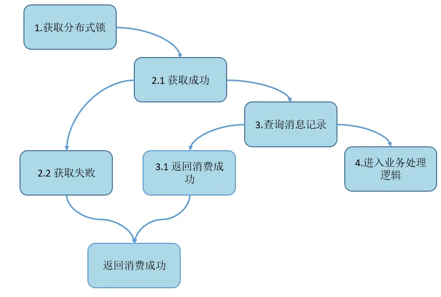 顯然我們也需要避免這一點,那我們該怎麼辦呢? 我們可以從消息中選取唯一鍵,當作分佈式鎖的key,第二次重試的時候直接返回處理成功, 代碼如下面所示: