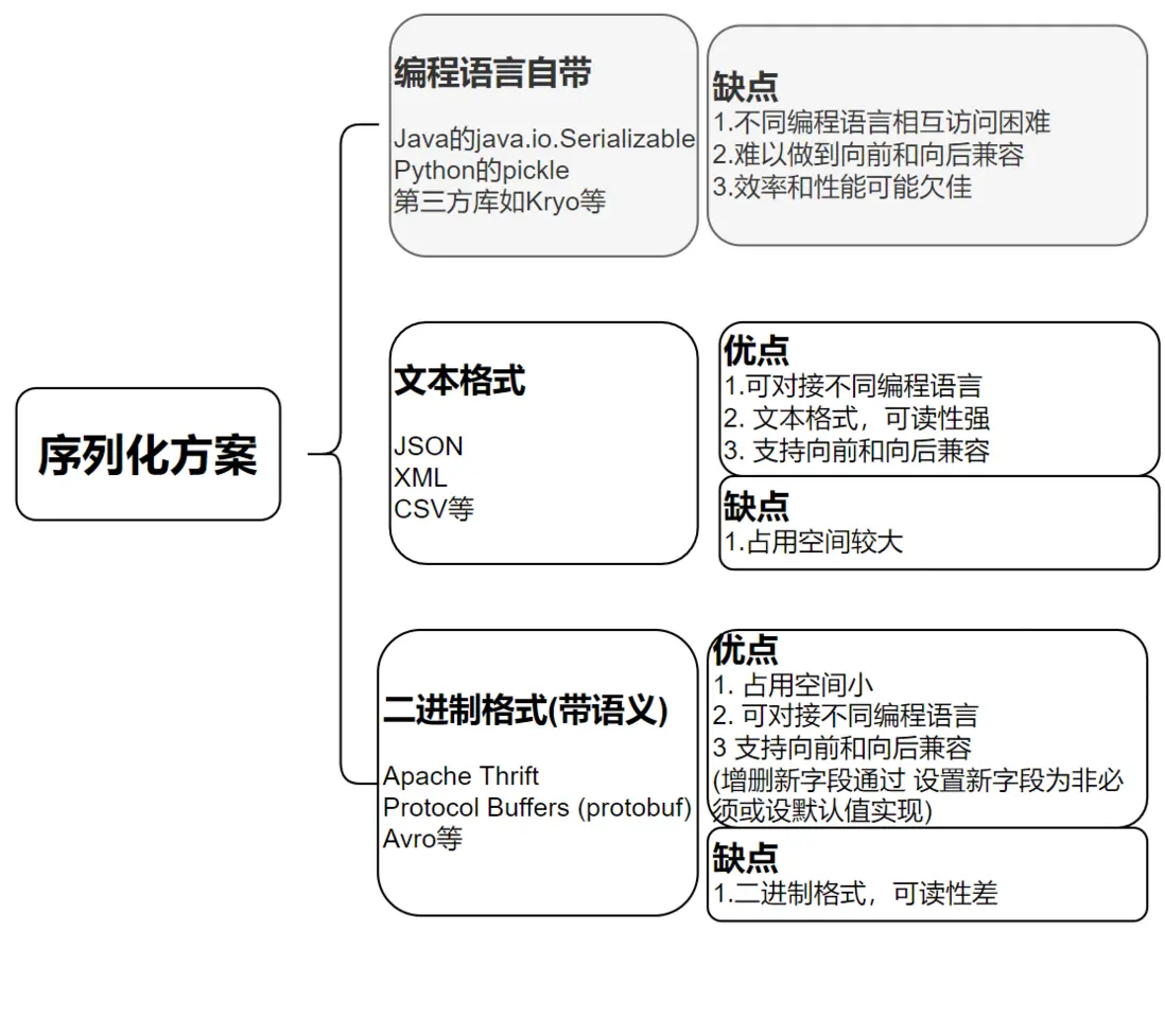 很多系統會選擇Json/XML等文本格式和Avro等二進制格式的方案[2]。