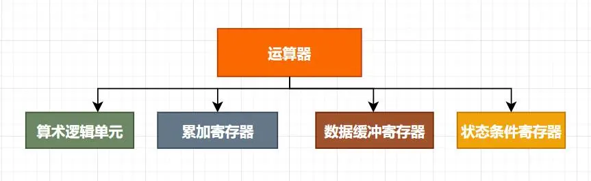 運算器包含:算術邏輯單元、累加寄存器、數據緩衝寄存器、狀態條件寄存器。