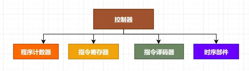 控制器包含:程序計數器、指令寄存器、指令譯碼器、時序部件。