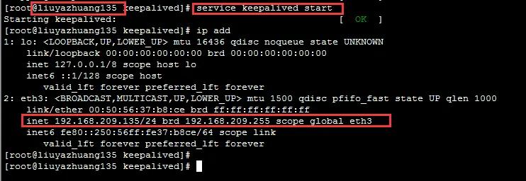 (3)重新啓動 192.168.209.135 中的 Keepalived
