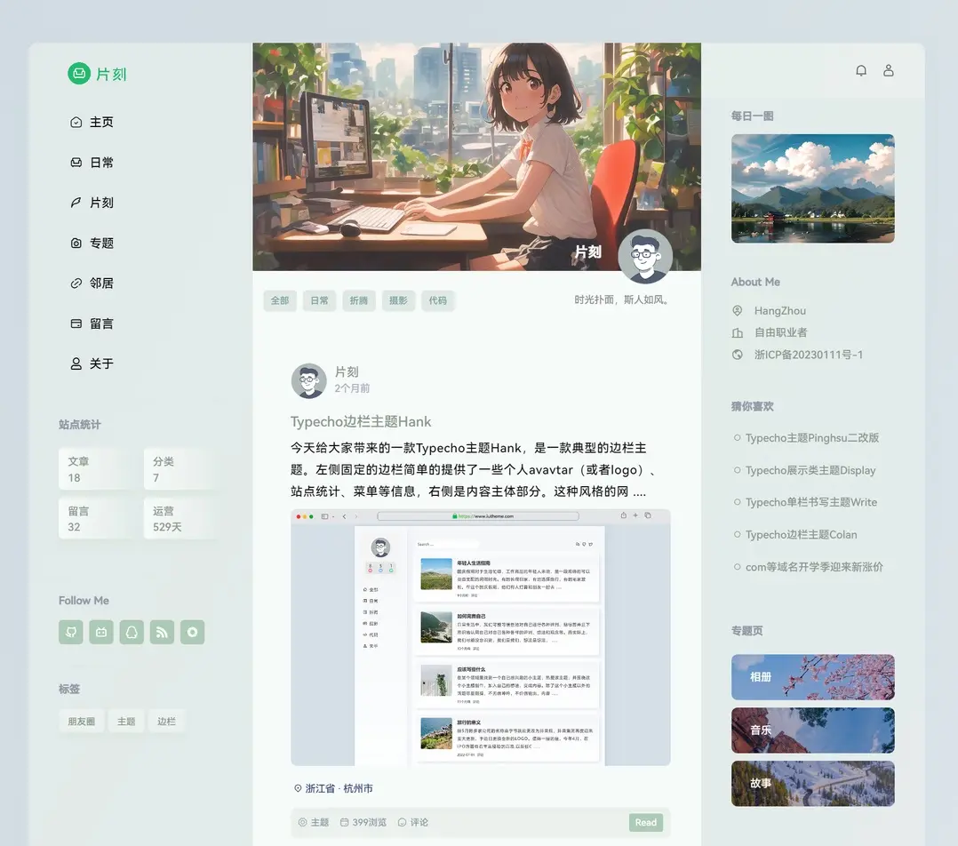 30多款個人博客、個人網站、個人主頁div+css,html在線預覽,個人靜態頁面模板(wordpress、帝國cms、typecho主題模板).這些簡潔和優雅的博客網頁模板,為那些想成為創建博客的個人或媒體提供靈感設計。網頁模板可以記錄旅遊、生活方式、食品或攝影博客等網站。部分網頁模板來源網友,演示僅為前端設計提供參考http://www.bokequ.com/blog/1/